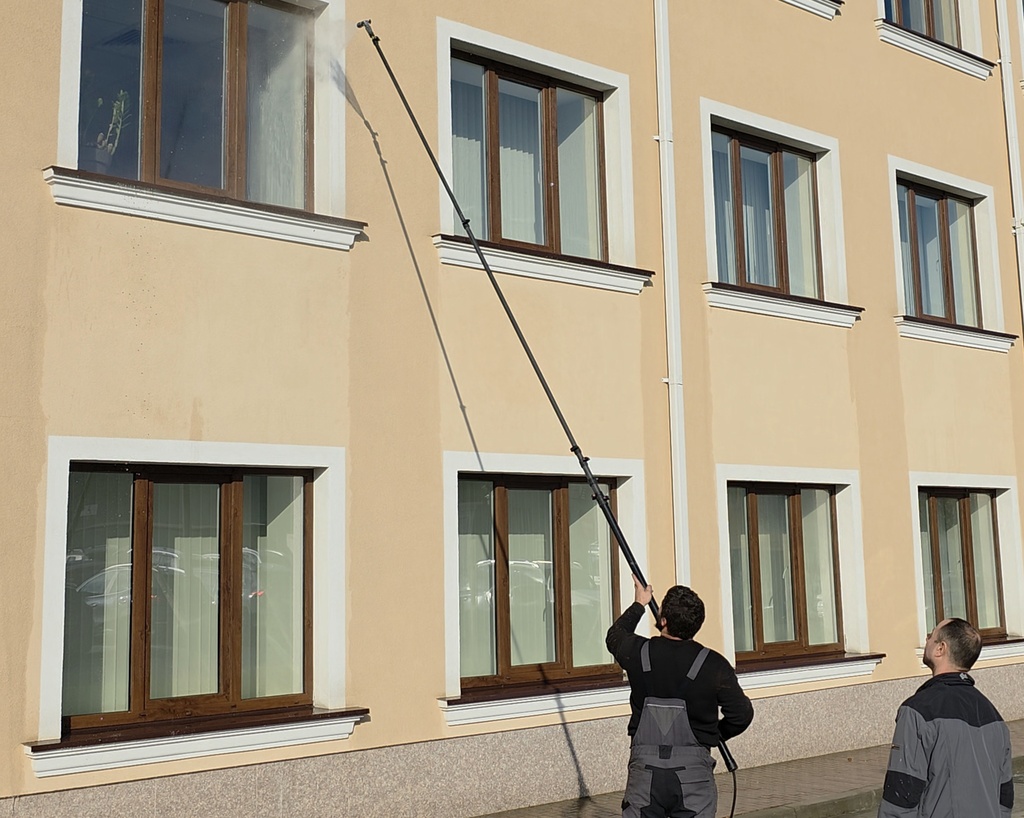 | SPĂLARE FERESTRE ȘI FAȚADE, de la sol cu apă demineralizată Spălare suprafețe cu apa demineralizată, înălțimea de până la 20 m. |