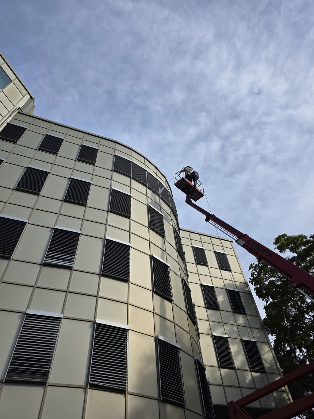 | spălare ferestre și fațade, cu autoturnul. Spălarea suprafețelor folosind autoturnul. |